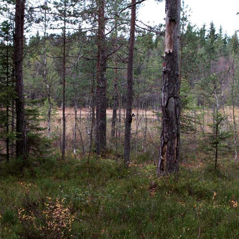 Noe syd for Krokkleiva. Vi kjører flere kilometer, opp på Nordmarksplatået, går flere kilometer inn i skævven, og deponerer litt plast på et tre.